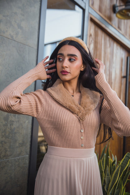 This Attached Fur Collar Sweater elegantly combines style and coziness. Its soft fur collar adds an extra touch of luxury and warmth, making it the perfect choice for cooler days. It is a chic and comfortable winter wardrobe essential.