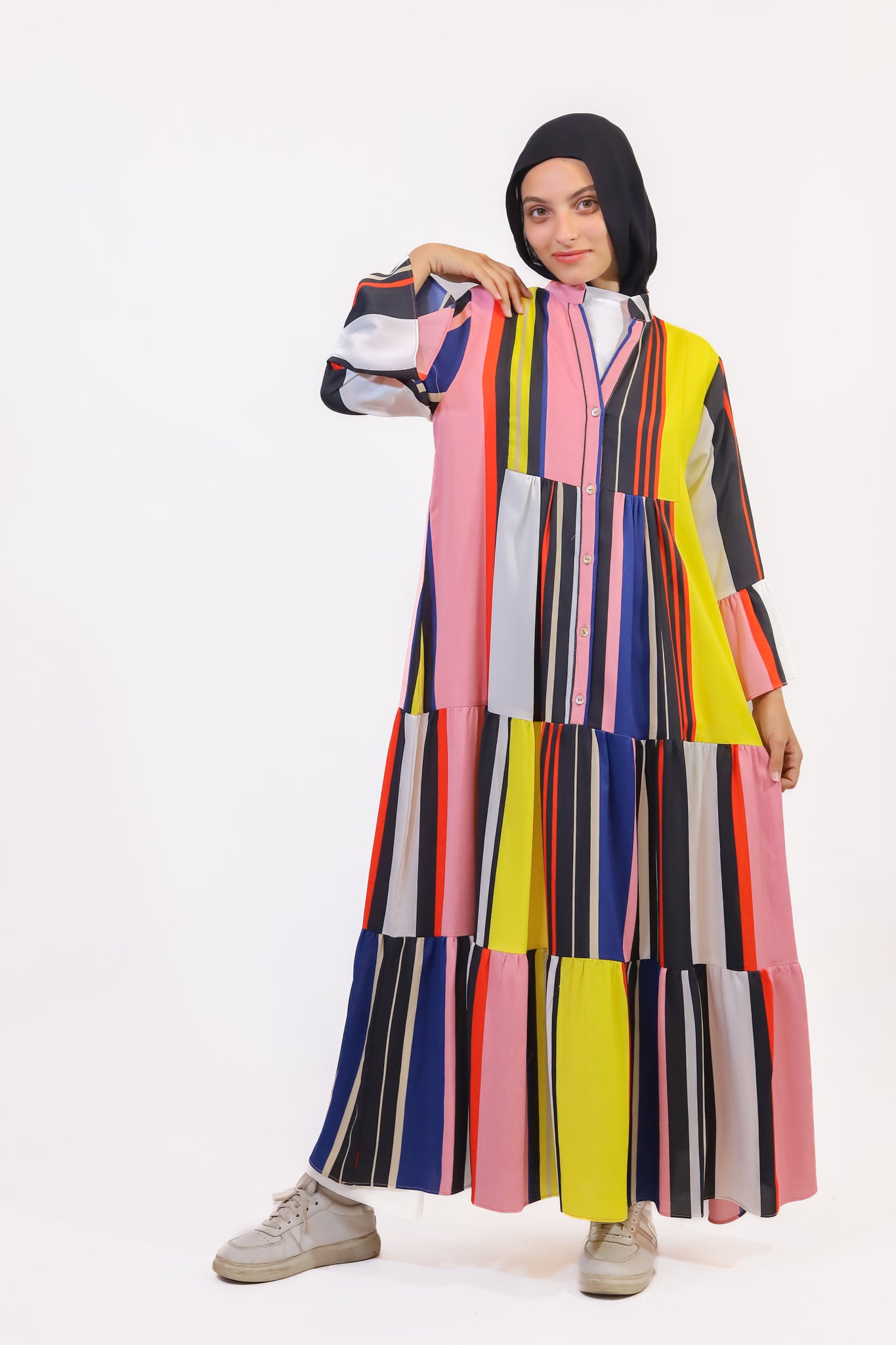 colourful striped cotton dress with buttons