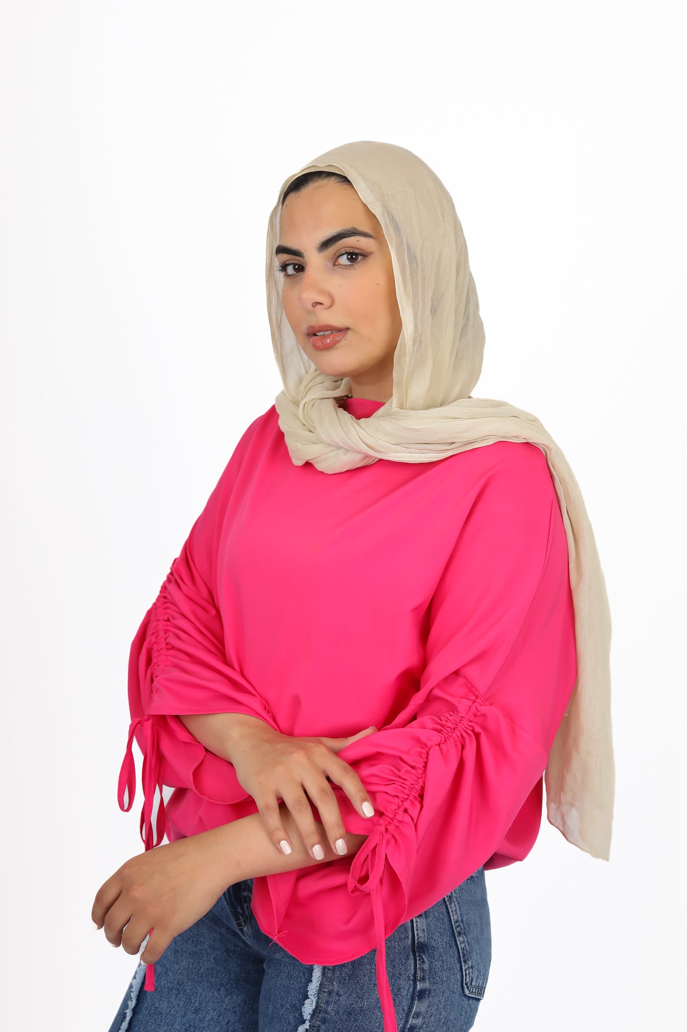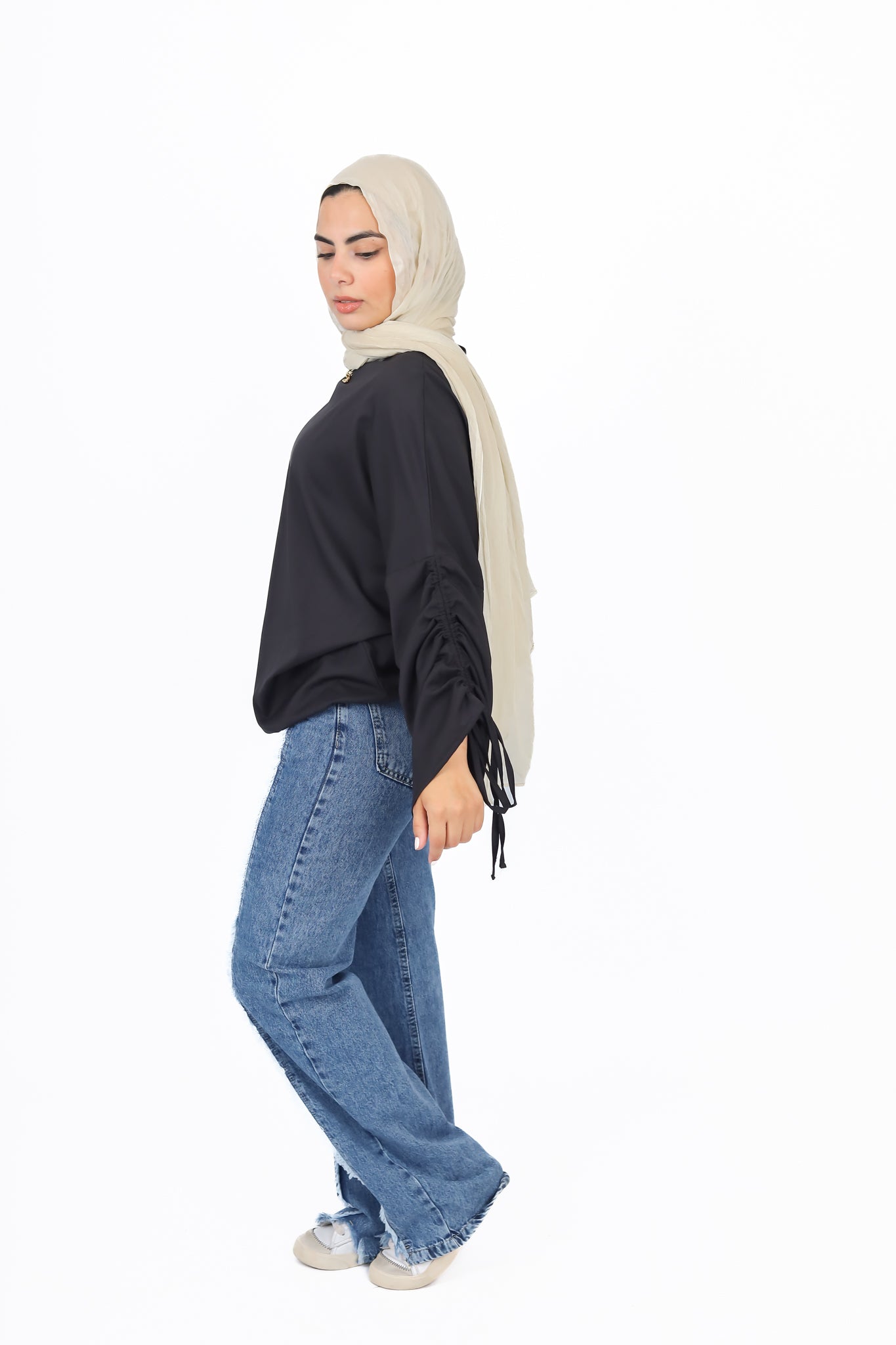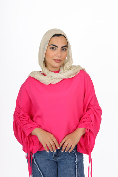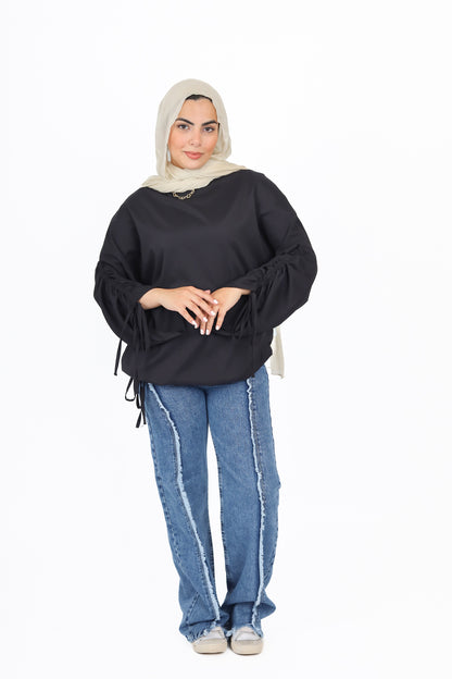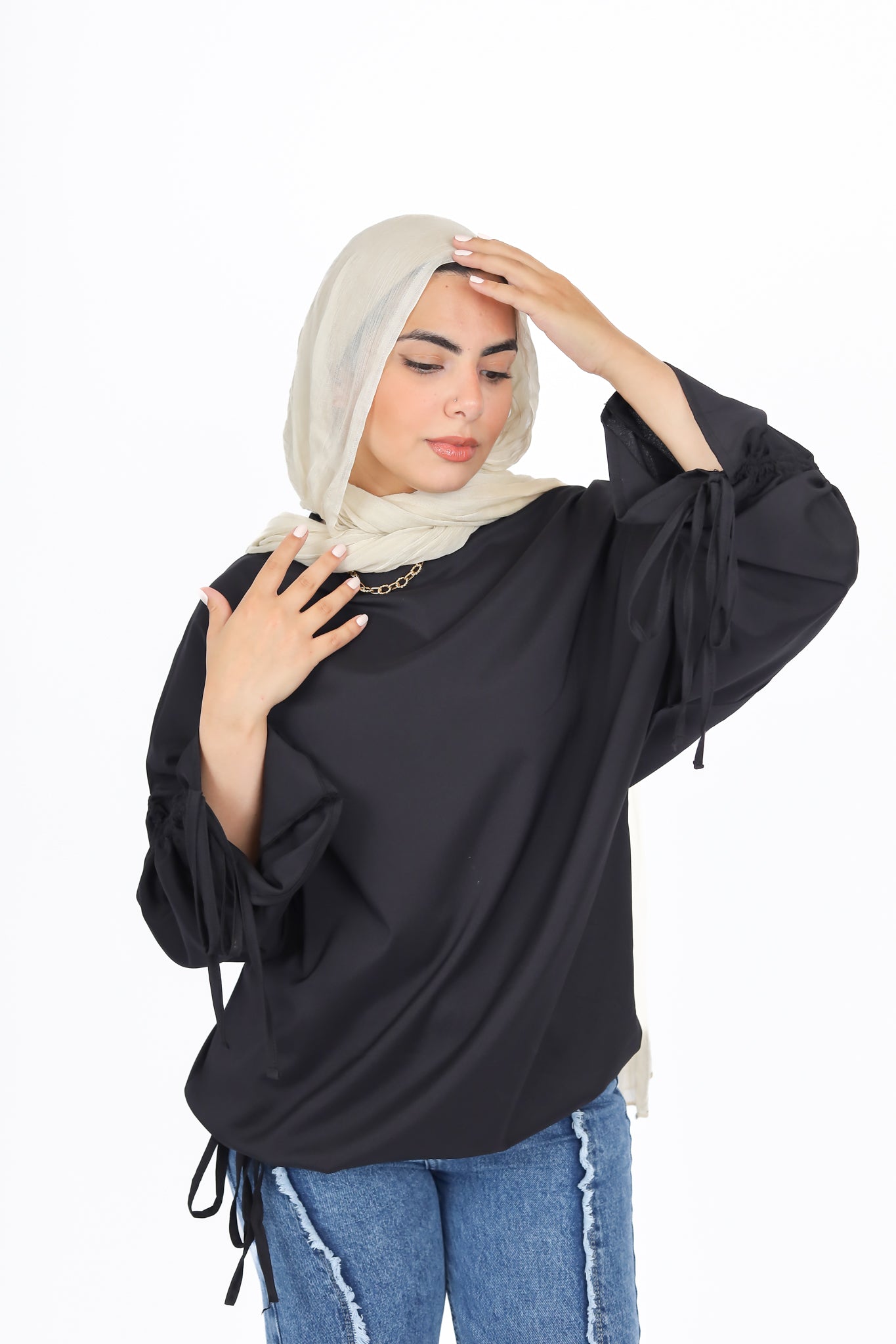 cotton soft blouse with elastic ends and sleeves and top hemline for easily adjustable